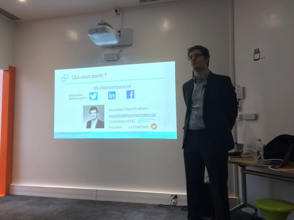 Mardi 15 novembre dernier, Alexandre Stachtchenko cofondateur de Blockchain France, a remplacé au pied levé Antoine Yeretzian pour nous expliquer comment marche une blockchain, à quoi elle sert, et quelles sont ses limites[1].
