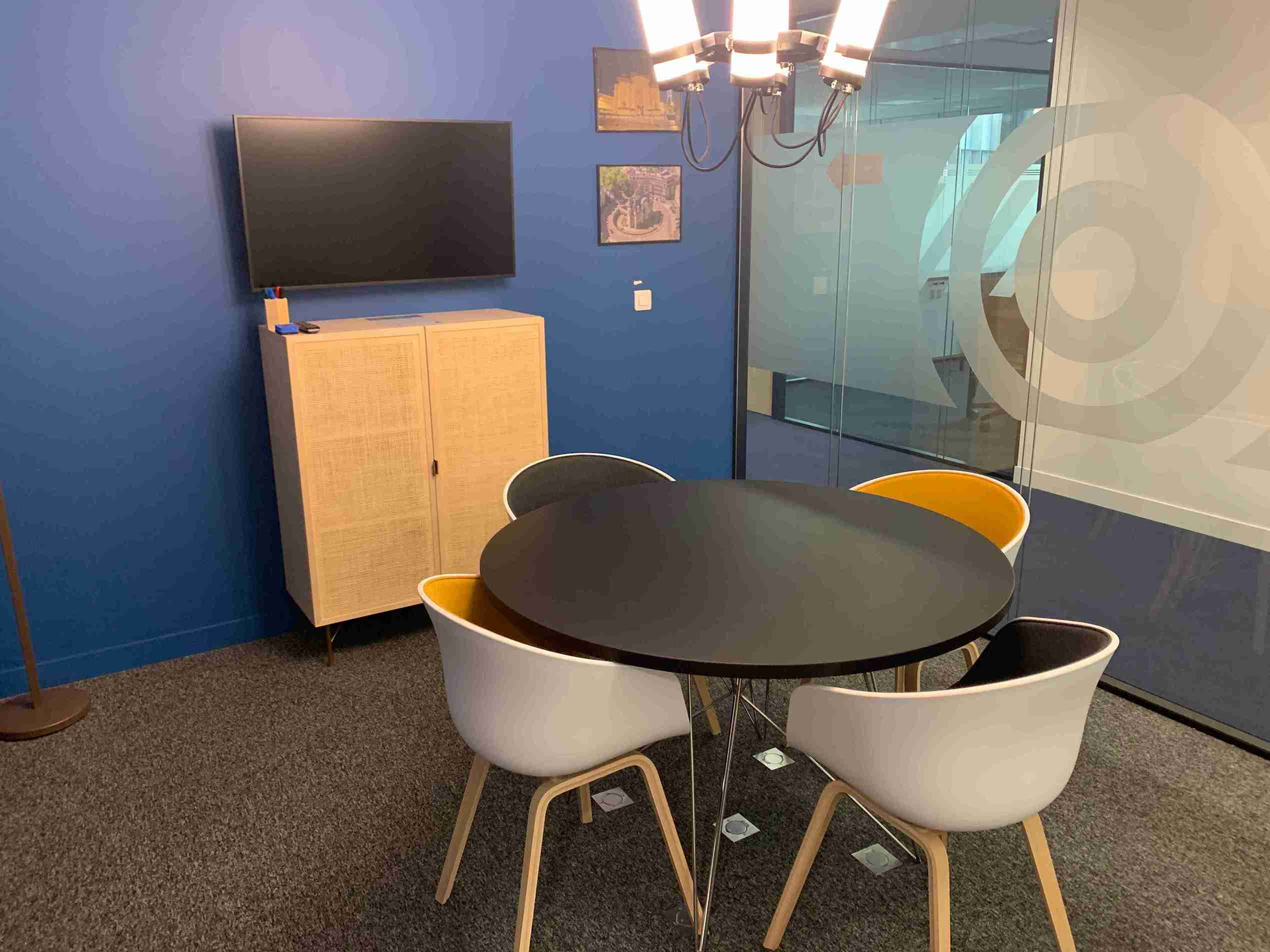 Esta sala de reuniones para hasta 4 personas se encuentra en Wojo Lille - Centre. Esta sala de reuniones en alquiler está disponible por horas, medio día, día completo y más*. Este alquiler incluye: