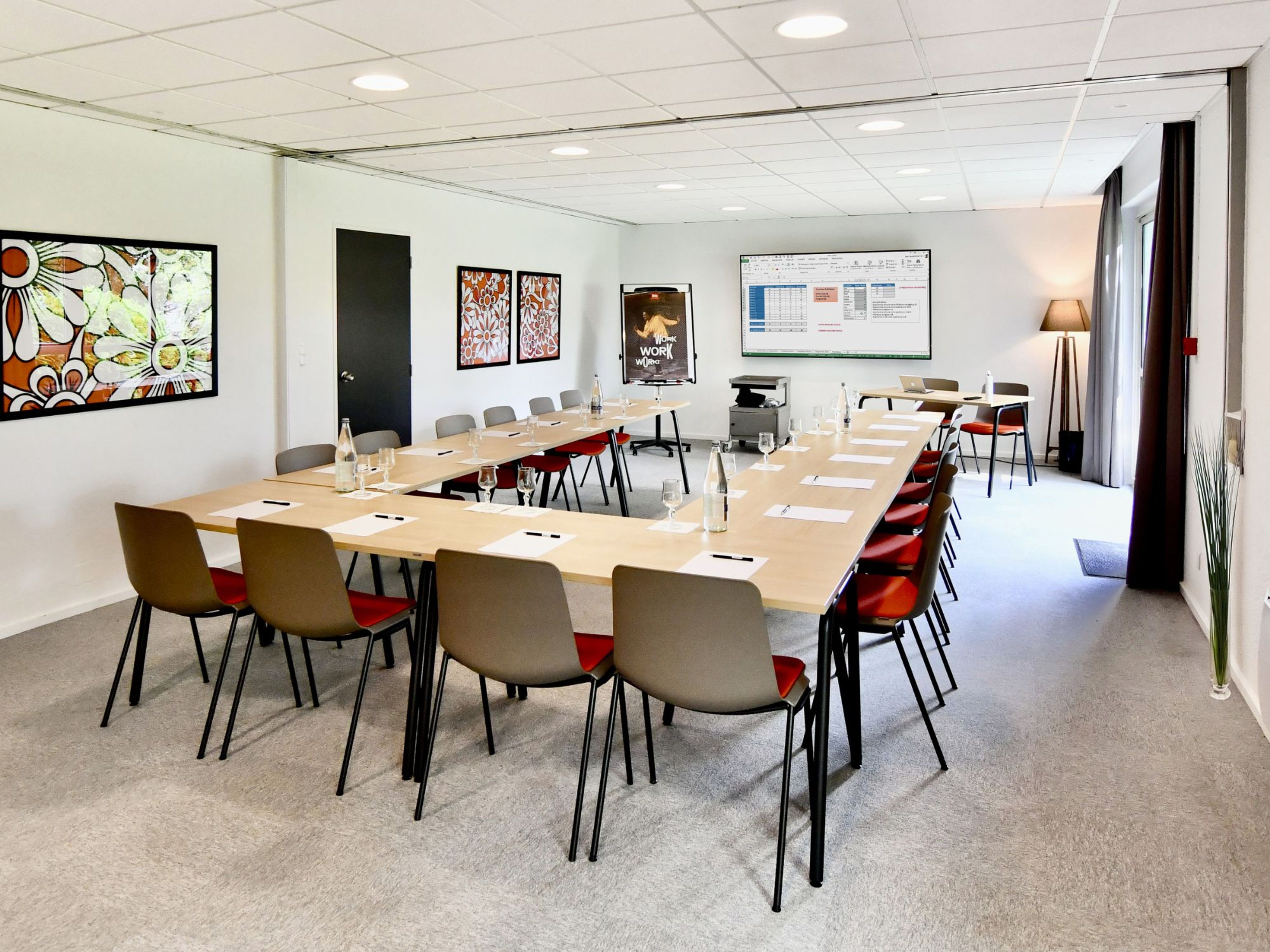 Salle de réunion avec un accès privé à l'extérieur. Lumière naturelle et toute équipée.