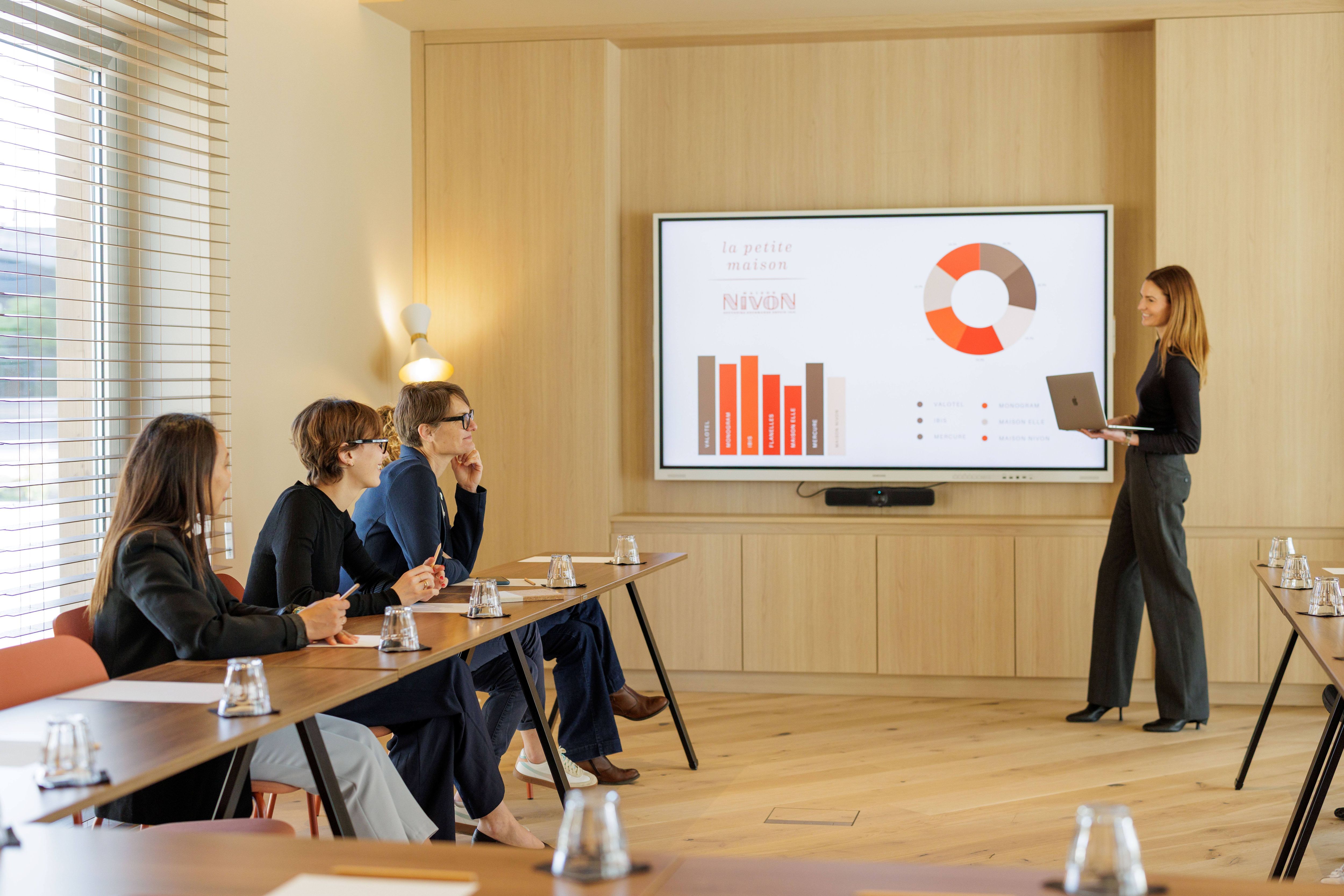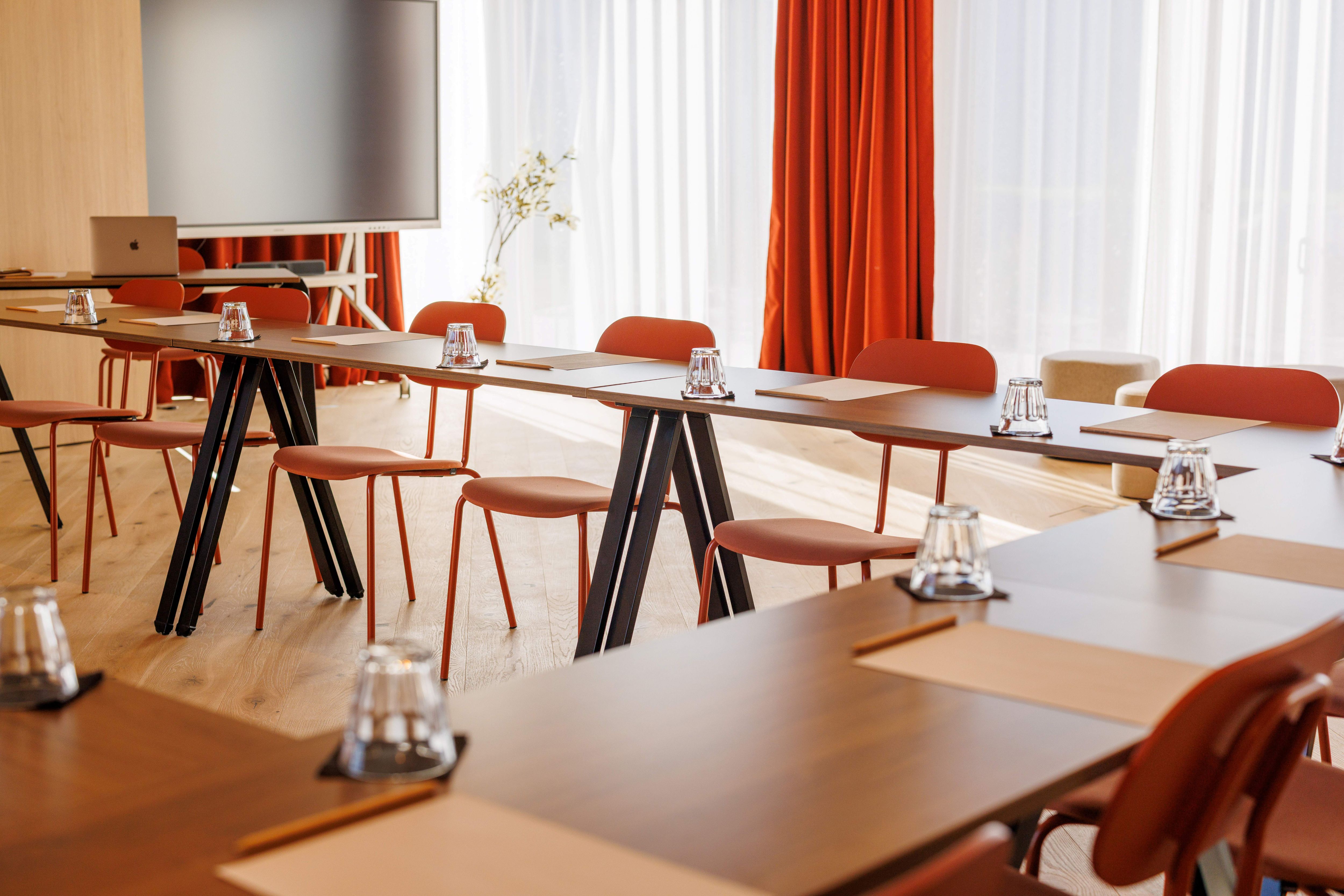 Nos équipes vous accompagnent dans l’organisation de votre meeting, préparent votre salle de réunion puis vous accueillent, vous et vos invités le jour J. Pensées pour répondre aux attentes des entreprises, nos salles de réunion sont tout équipées et disponibles à la carte (d'une demi-journée à plusieurs jours). Demandez auprès de l'hôtel une configuration en U, en théâtre ou en classe.