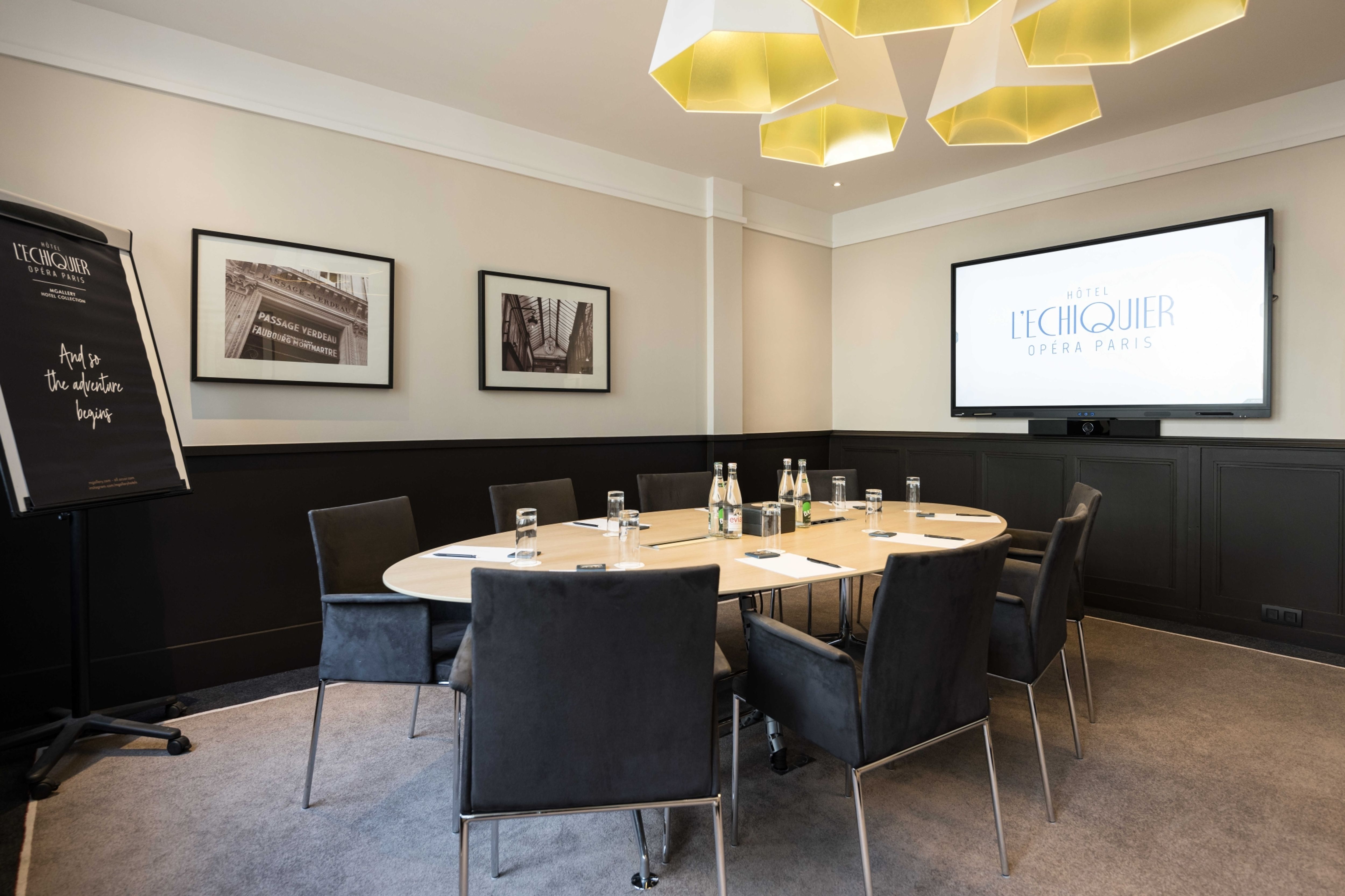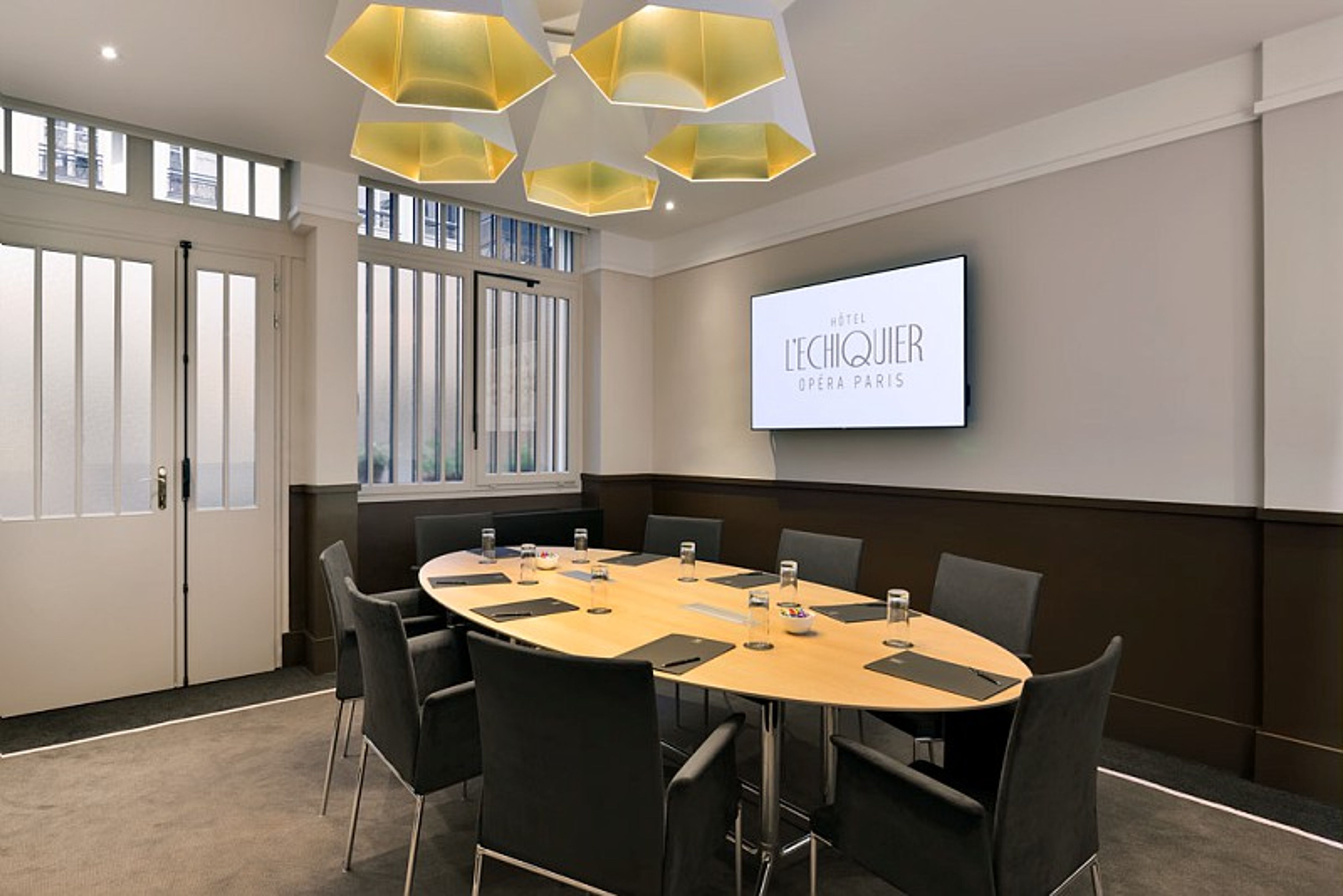 Organisez une réunion, un séminaire, team building ou événement d’entreprise au Wojo Paris 10e - MGallery L'Échiquier Opéra dans un environnement à la fois original, professionnel et convivial ! Nos équipes vous accompagnent dans l’organisation de votre meeting, préparent votre salle de réunion puis vous accueillent, vous et vos invités le jour J. Pensées pour répondre aux attentes des entreprises, nos salles de réunion sont tout équipées et disponibles à la carte (d'une demi-journée à plusieurs jours). Inclus dans cette location de salle de réunion de 8 personnes :