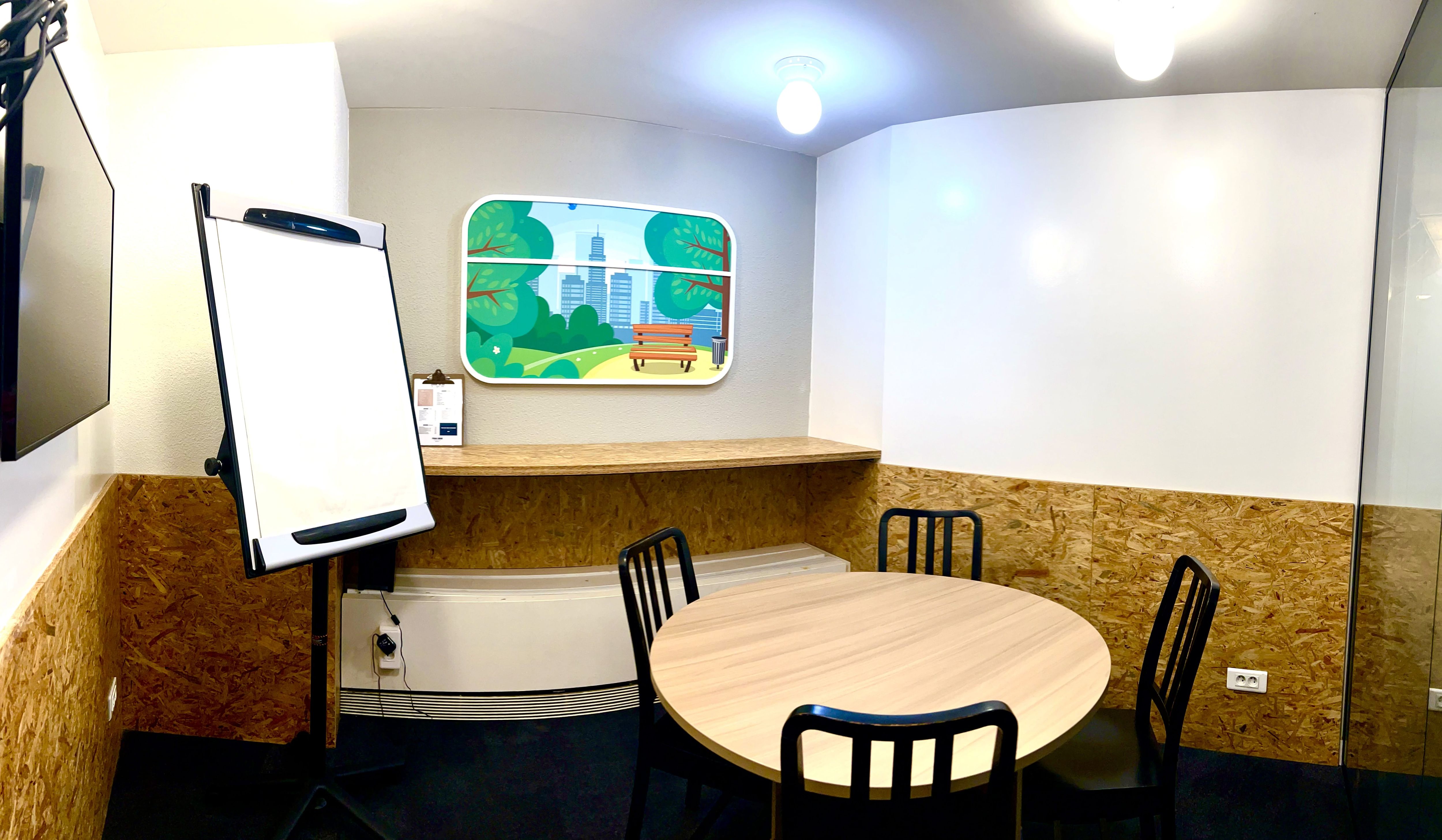 Cette salle de réunion de 4 personnes maximum se trouve au Wojo Paris 12e - Gare de Lyon. Clé en mains, cette salle de réunion à louer est disponible à l’heure, la demi-journée, la journée ou plus*. Cette location inclut :
