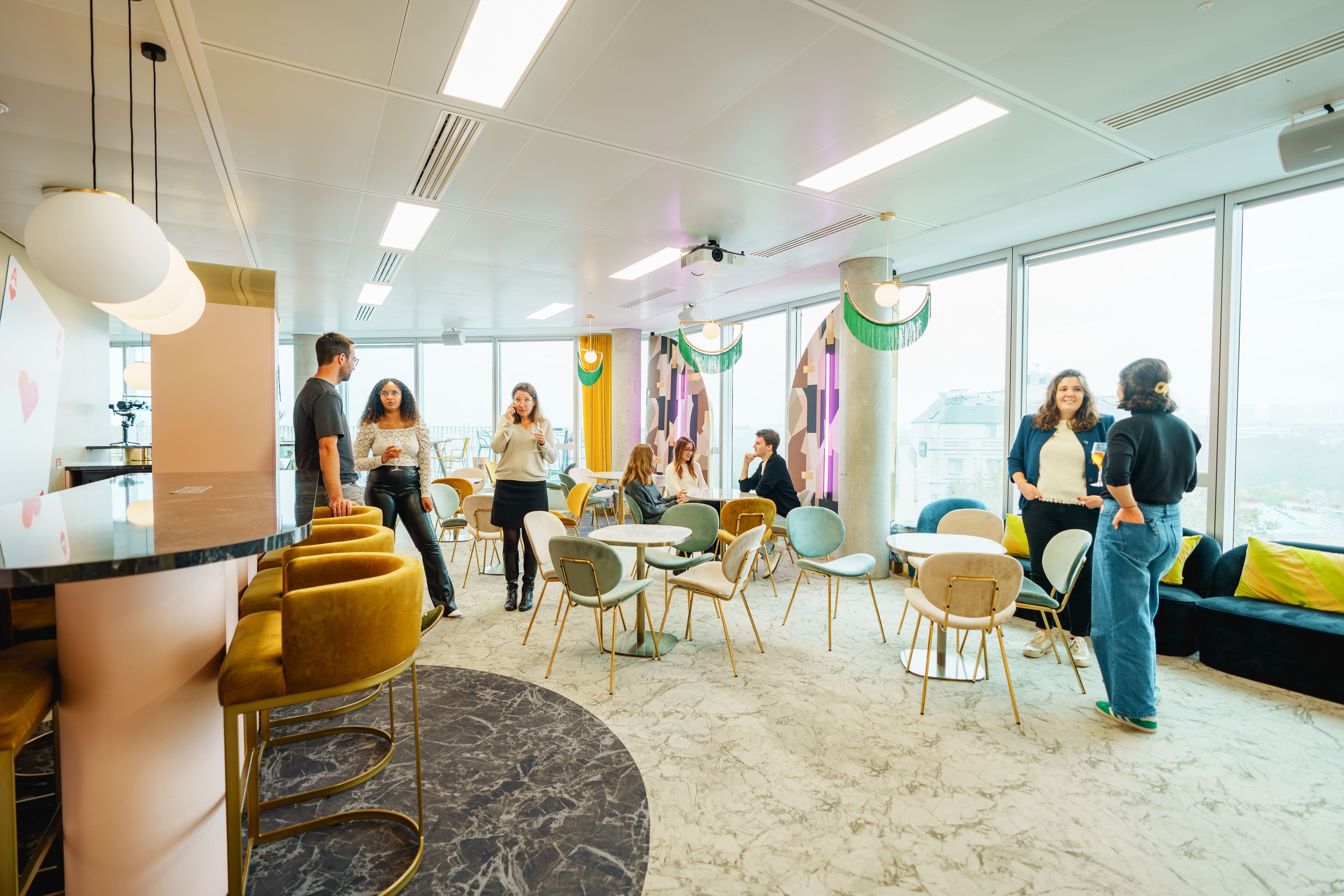 • Accès au coworking autour du bar, aux coins salons…