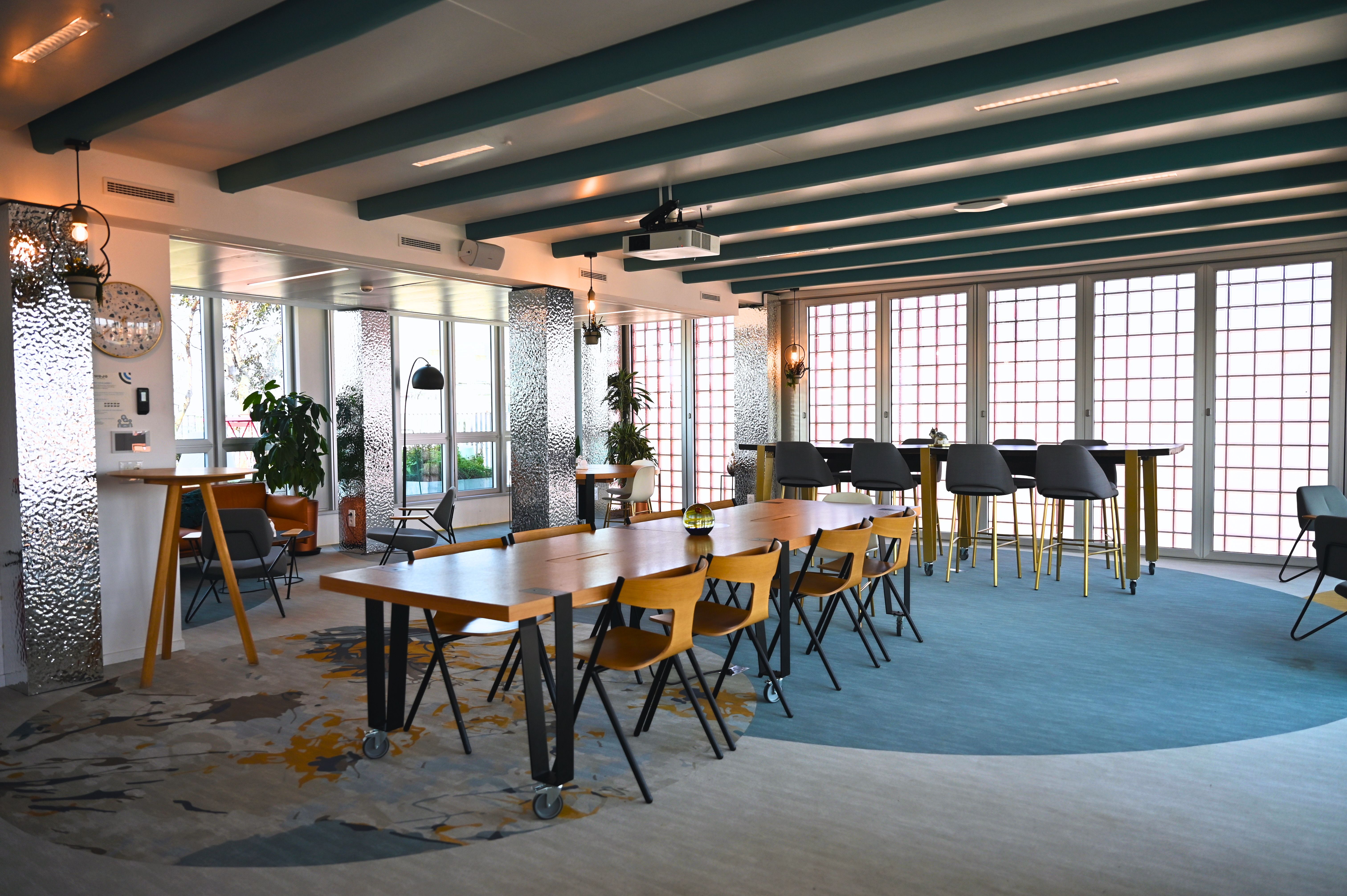 Organisez une réunion, un séminaire, team building ou événement d’entreprise au Wojo BnF dans le 13ème arrondissement de Paris dans un environnement à la fois original, professionnel et convivial ! Nos équipes vous accompagnent dans l’organisation de votre meeting, préparent votre salle de réunion puis vous accueillent, vous et vos invités le jour J. Pensées pour répondre aux attentes des entreprises, nos salles de réunion sont tout équipées et disponibles à la carte (d'une demi-journée à plusieurs jours). Inclus dans cette location d'espace de 50 personnes* :